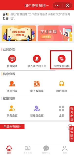 第一步:登录智慧团建系统,选择组织关系转接。