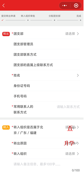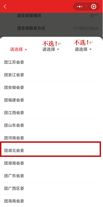 第四步:填写转入组织信息(注意:转入组织信息中仅勾选团湖北省委,市委和区委选项均不勾选!!!)。