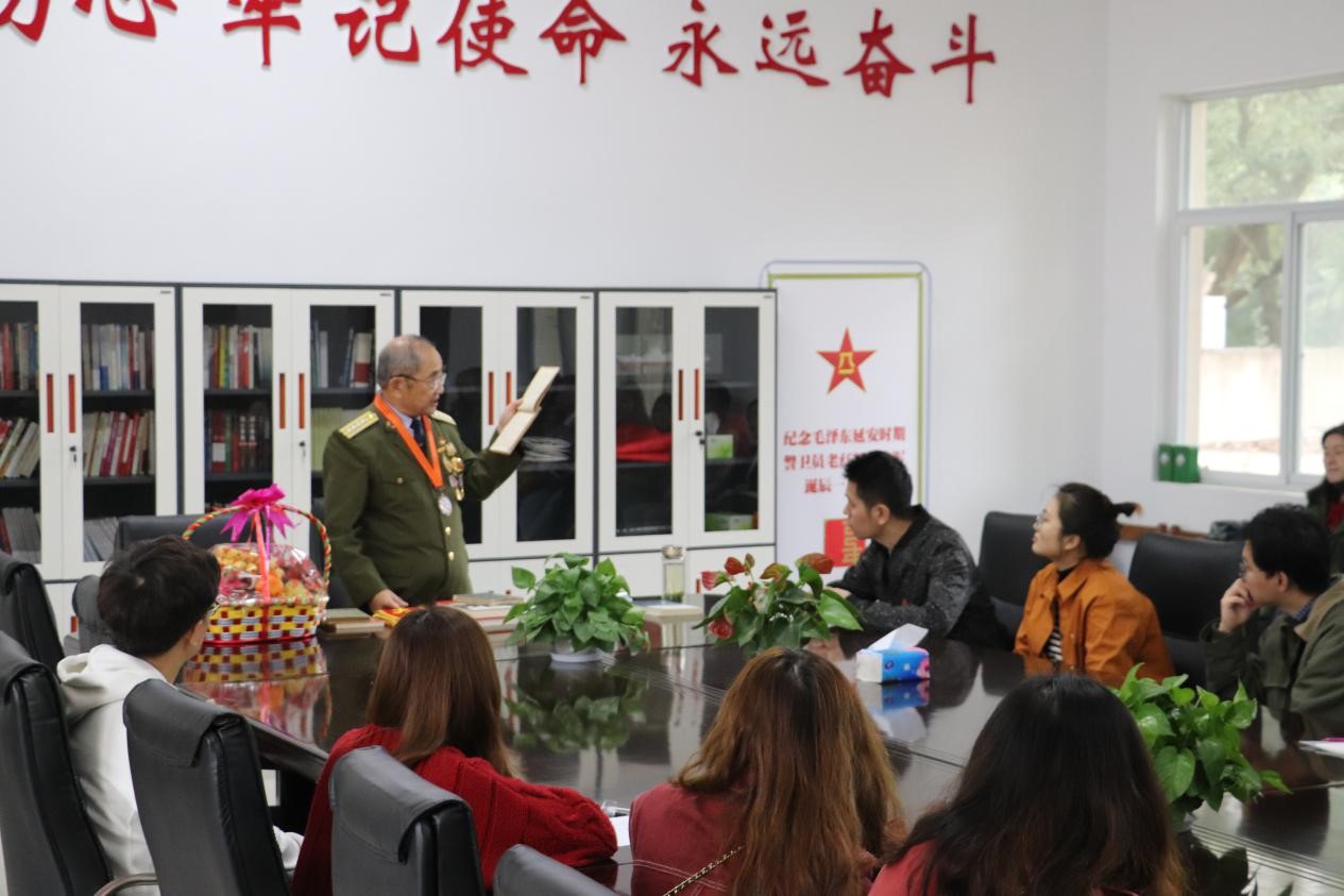 参观结束后,老战士报告团现任团长、有55年党龄的老党员毛兰成同志结合自己的亲身经历,为同学们带来了一堂精彩的党课,诠释了什么是“不忘初心,奋斗终身”的初心精神。毛兰成同志告诉同学们,革命老前辈之所以可以做到“不忘初心,牢记使命”是因为他们的红色基因始终存在,始终“坚守信仰高地,忠诚于党”、“坚持人民至上,关爱下代”、“坚持奋斗终生,旗帜不倒”。而现在作为学生党员的我们要想做到“不忘初心”首先要了解自己的初心是什么,要明确自己的初心三个方面的内容:1、人生的初心;2、组织的初心;3、事业的初心。要想做到“不忘初心,奋斗终身”除了学习老前辈们的光荣事迹以外还要做到“根植初心,理想高远”、“滋养初心,理论武装”、“砥砺初心,接受考验”、“坚守初心,奋斗终身”。