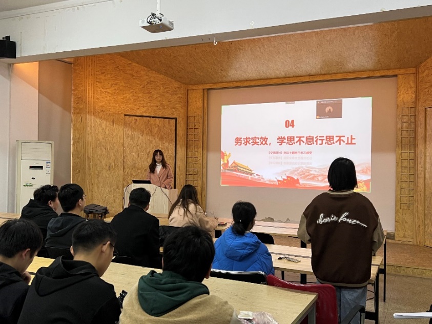 活动接近尾声,党建辅导员庞灿楠老师总结发言。她首先对本次主题党日活动的开展表示了充分的肯定,在内容和形式上都是组织生活开展的示范。同时,庞灿楠老师也提出了几点希望,一是要结合专业需求和实践加强思政理论学习,关注两会会议精神;二是要明确自己的党员定位,提高自身工作标准;三是要发挥党支部战斗堡垒作用,深入团支部和班级开展活动。