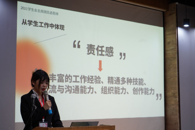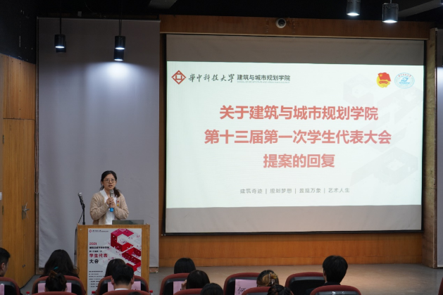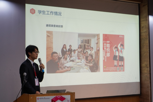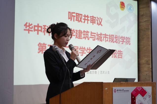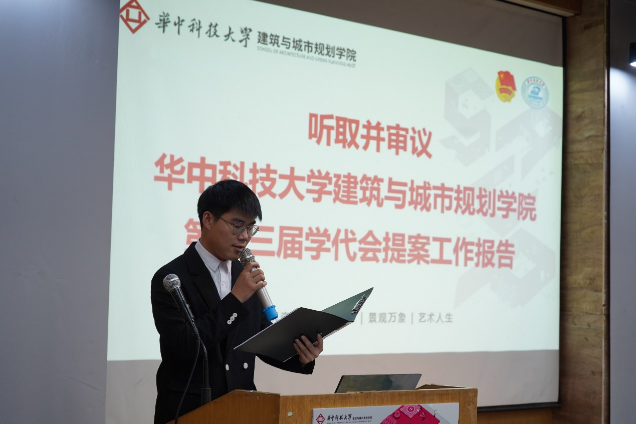 接下来,由党委副书记何立群老师致辞。何书记对我院一年来的学生工作表示了肯定和赞许,同时鼓励建规学院的学子们自觉践行社会主义核心价值观,成长为勇担大任的时代新人,为打造世界一流大学添砖加瓦,为实现中华民族伟大复兴努力奋斗。随后,陈庆馀同学作2021年度建规学院学生会工作报告,从组织概况、工作总结和反思展望三个方面全面介绍了2021年学生会的工作与队伍建设成果,并由全体到会学生代表审议。李卓起同学从成长成才、教育教学、生活服务,权益维护等方面作2021年度提案工作报告。