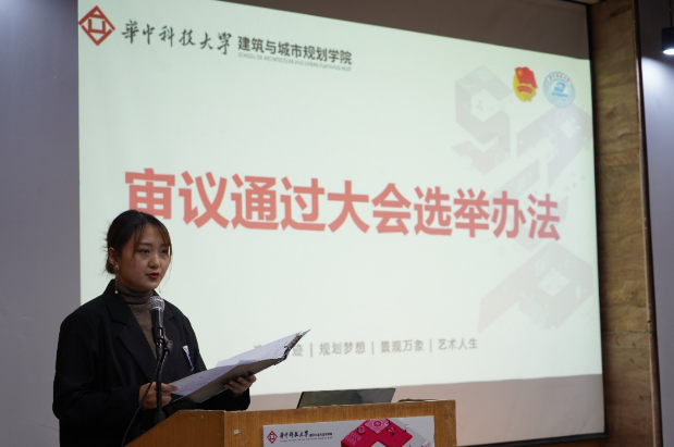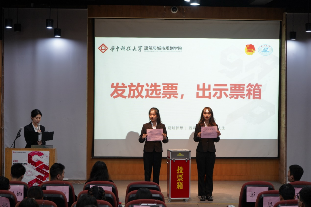 短暂休会后,大会进行最后部分,建规学院第二十三届学生会主席团换届选举工作。首先,主席团成员李雪靖同学宣读《太阳集团网站8722学生会主席团选举办法》。随后,五名候选人进行了精彩答辩。蒋雨宏同学用起承转合四个模块将自己的成长经历娓娓道来,热爱生活,更爱自己,最后以“一生随喜,白水鉴心”结语共勉;陈紫仪同学在竞赛和学业中创新,在公益和实践中修炼,努力让他人因自己的存在而感到温暖;侯俊杰同学热爱中国书法,醉心古典文化,从一名懵懂的部员成长为成熟的带领者,积极进取,超越自我;李文龙同学拒绝标签,不断尝试科研竞赛,创造无限可能,用实际行动证明自己的热爱与成长;樊一衡同学好钻研,有主见,有灵气,肯上进,在积累工作经验与不断创新思考中成长为一名斜杠青年。然后,在总监票人、总计票人和计票人及现场工作人员的通力协作下,投票环节顺利开展。计票环节结束后,总监票人赵爽老师公布建规学院第二十三届学生会主席团选举结果,蒋雨宏、李文龙,樊一衡同学经差额选举成为新一届主席团成员。