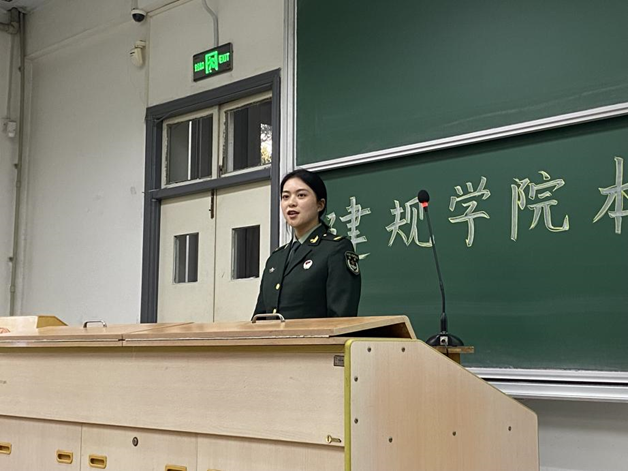第二部分,由17级退伍大学生汪梦洁分享了她的入伍服兵役的故事。分享分为两部分,一是个人入伍经历,二是入伍的流程条件及福利。