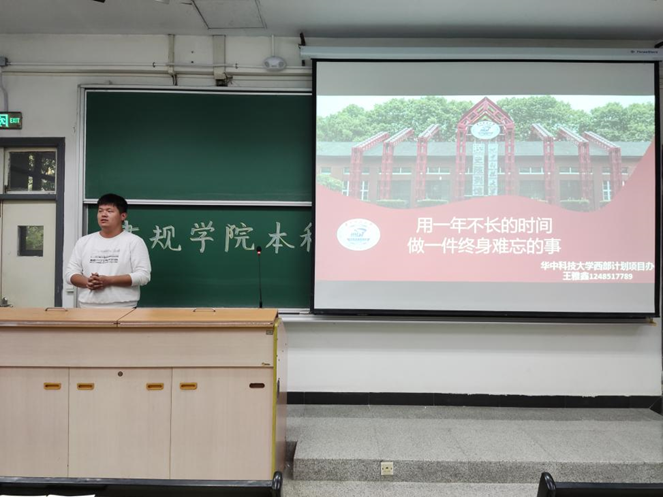 第一部分,研支团介绍。在西部计划介绍视频播放后,分享人——19届研支团团长王雅鑫上台讲述了他的支教经历,并介绍了考核选拔条件。