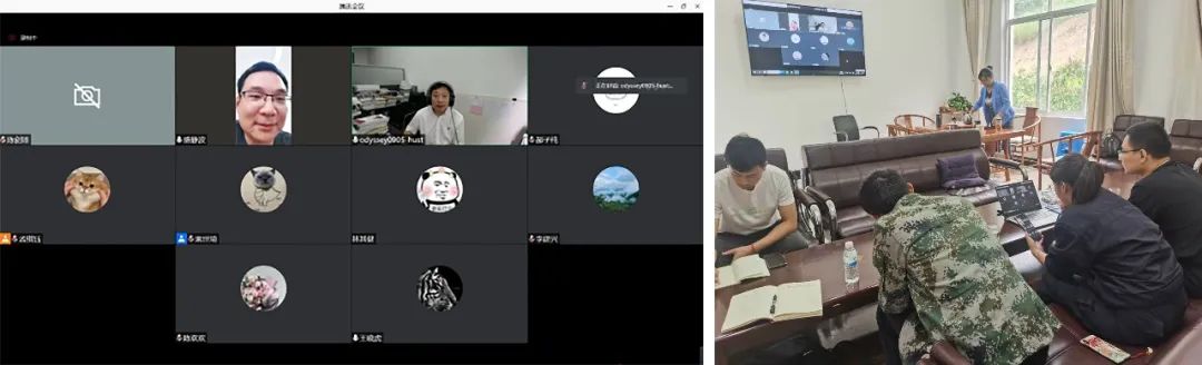 图为腾讯会议截图及蚂蚁堆村委会现场
