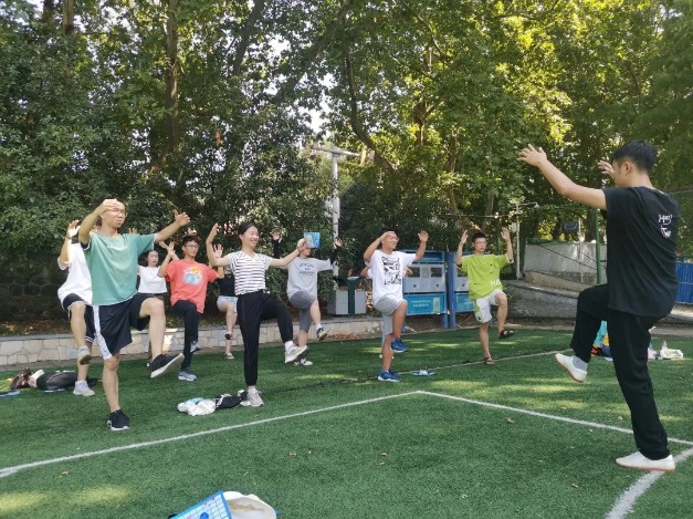 在操场的另一边,太极拳协会作为体育社团之一,为参与活动的同学们精心准备了两个小游戏,让大家既能了解到太极拳的部分内容,也能从中收获到如何调整身体姿态的养生窍门,更能体会到富含玄妙的太极拳当中蕴含的旨趣。