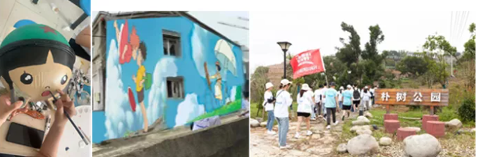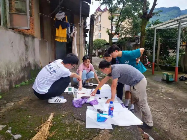 作为第二批参与活动的大学生,小队在驻地鸡山乡中心小学观看了垦荒纪录片,学习垦荒精神。同时,在导师的带领下熟悉鸡山环境,并做好任务分工。其中让成员印象最深的是旧物改造、PS效果图制作和改造朴树公园。旧物改造是将岛上渔民闲置的舢板、渔具通过喷绘手绘等改造成有意思的纪念品。PS效果图制作则是利用自己的专业知识,用PS做出墙绘、朴树公园布置的效果图供大家照图操作。改造朴树公园是将当地的一个荒废的公园打造出青春的网红打卡点吸引游客。