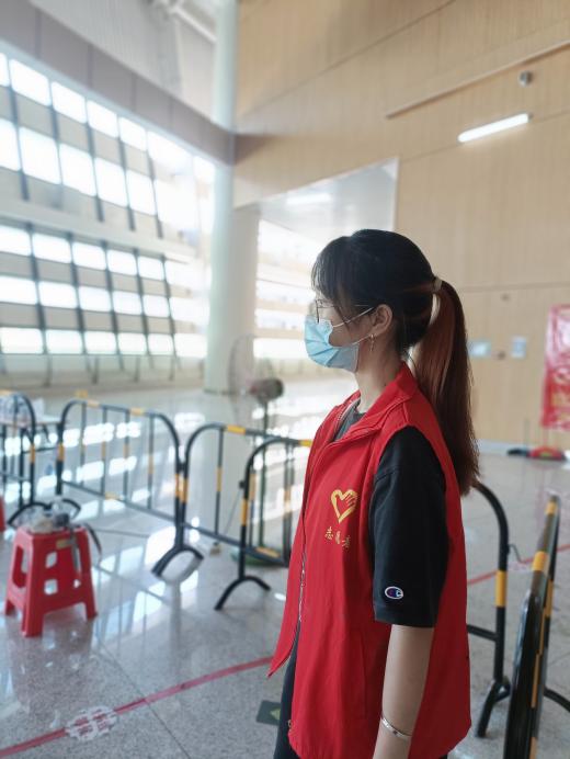 在做疫苗接种卡点值守志愿服务的韦佳璇