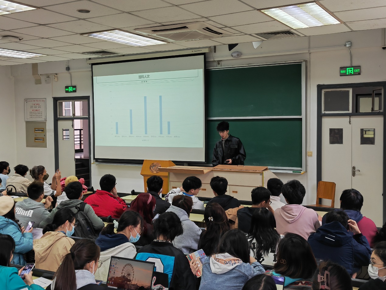 第一部分,叶少华老师就上学期学业情况进行汇总分析,分别谈到班级挂科人数、成绩分布以及平均加权。强调了大一学生不能一味躺平,也不必过分焦虑;部分挂科较多的同学,摆正学习态度。大学生活时间飞逝,每个人都应该继续努力上进往前冲,争取自主选择权。