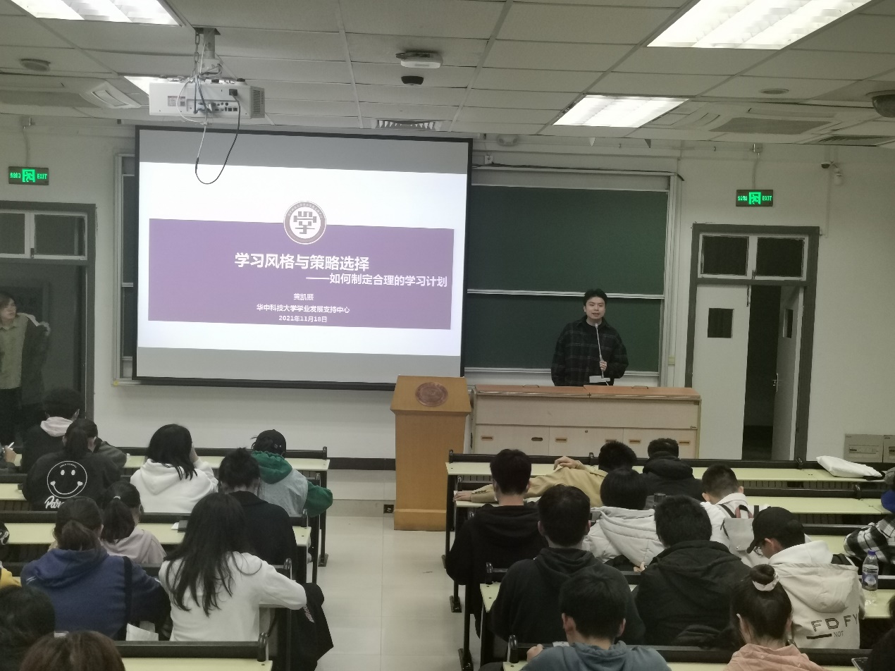 学业发展指导课程于11月18日晚7:00-9:00,在西十二楼N201教室顺利进行。学业发展支持工作室的黄凯熙老师为建规学院21级本科新生带来了《第三讲:学习风格与策略选择》和《第四讲:学习奥妙与高效学习》。