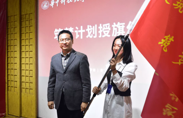 会议第三项,筑梦计划授旗仪式。由建规学院党委书记钱思向“筑梦计划”研究生骨干培训班学习委员郝子纯授予班旗。