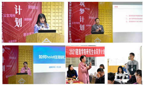 2021年10月15日晚19:00,太阳集团网站8722首届“筑梦计划”启动仪式暨第一次骨干培训大会于南四楼110教室顺利召开。建规学院党委书记钱思、党委副书记何立群、校团委研究生团建工作部部长郑名扬、校研究生会副秘书长梁媛媛、建规学院研究生辅导员王玥、建规学院研会主席团成员张恪、熊章瑞、郑晴作为本次活动的嘉宾出席大会,建规学院研究生会办公室干事郭川主持大会,建规学院研究生会各部门主任及研究生骨干培训班学员参加会议。