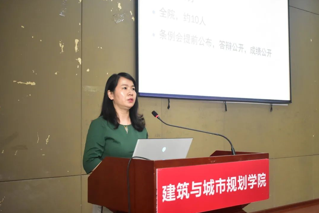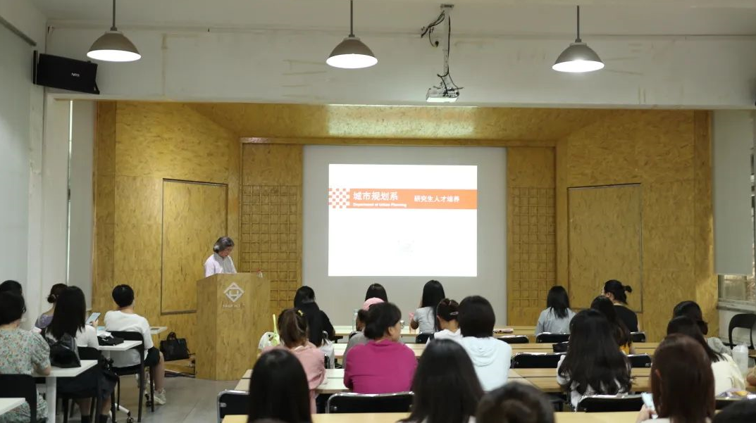 城市规划系任绍斌老师对本专业研究生培养基本情况进行介绍,提出城乡规划专业旨在培养思想先锋、科研能手、大国工匠;他详细为大家介绍专业课程体系,指出导师工作室是大家最重要的学习平台,希望同学们积极融入导师团队,实现合作共赢。