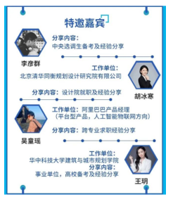 分享嘉宾有考取选调生的21届博士毕业生李彦群、现就职于顶级设计院的20届硕士毕业生胡冰寒、跨专业求职到头部互联网公司的21届硕士毕业生吴童瑶,以及有着丰富事业单位、高校备考经验,同时负责学院研究生思政教育的辅导员王玥老师。