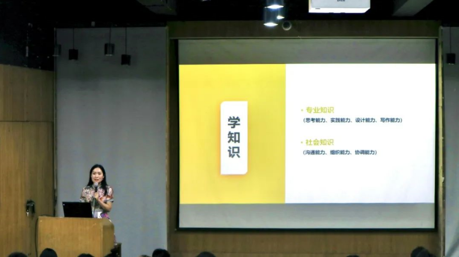 接下来是建规研会的宣讲。宣讲伊始,2021级研究生辅导员王玥老师作为2016级建规研会主席团学姐为大家简要介绍了建规研会的历史,同时表示曾经参与工作的学长学姐们在研会收获颇丰,也希望各位同学能够积极加入,并通过研会的平台结识更多优秀的同学,获得更多资源,不断提升自我。
