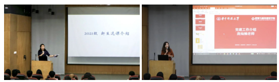 第一部分,喻见建规。首先教务李宏老师对各位进入建规学院的同学表示热烈欢迎。为了解决同学们的各种困惑,李老师从选课介绍、课程学习与成绩管理、《课程学习综合申请表》的使用与填写三个方面为大家进行研究生教务工作的介绍,并明确了教务与学工工作的工作范畴。同时由于今年采用了全新系统,李老师也对选课问题进行了相应的解答。此外,李老师强调在今后的学习生活中,要时刻注意学院与研究生院官网的文件,并认真学习入学手册中的规范要求,从而保证大家能够顺利完成研究生的学习生活。