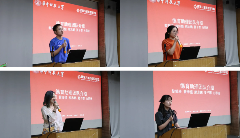 第三部分喻见研工。德育助理团队向大家介绍了各自负责的工作范畴,并为大家简要讲解了各种事务的注意事项,就业相关事宜、实践板块、党建板块等内容。并表示欢迎各位同学日后进行相关问题的咨询。