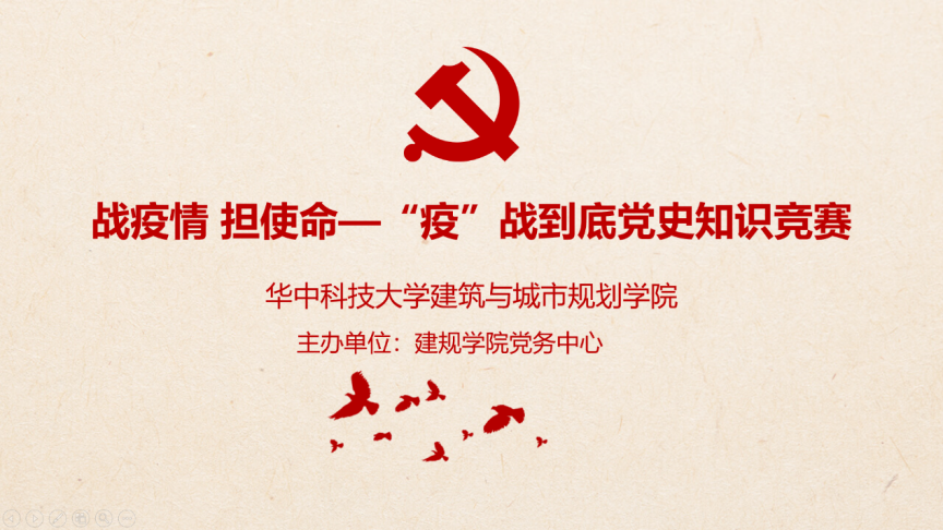 新冠肺炎疫情虽然给经济社会发展带来了挑战,但我们要善于化压力为动力,越是形势复杂,越要凝心聚力;越是任务艰巨,越要奋勇前进;在实践中检验自己,在实践中磨砺自己,在实践中找短板,补不足,不断提高自己,争做时代前列的奋进者、开拓者、奉献者。在疫情期间,为更好的推动党员们了解党史,在学生群体中弘扬“学党史,知党情,感党恩”的情怀,5月3日晚19点,建规学院在线上举办战疫情 担使命—建规学院“疫”战到底党史知识竞赛决赛。本次邀请到建规研究生辅导员杨柳老师、党建辅导员闫超老师、建规研究生会詹靳颖主席,党务中心杨轶主持。活动面向全体硕士、博士研究生,共有33名同学参赛,11名同学挺进决赛。