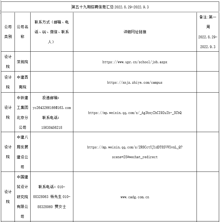 第五十九期招聘信息汇总2022.8.29-2022.9.3