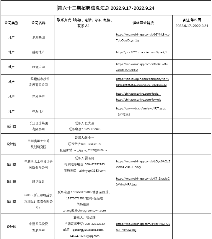 第六十二期招聘信息汇总2022.09.17-2022.09.24