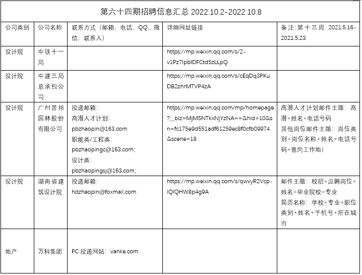 第六十四期招聘信息汇总2022.10.02-2022.10.08