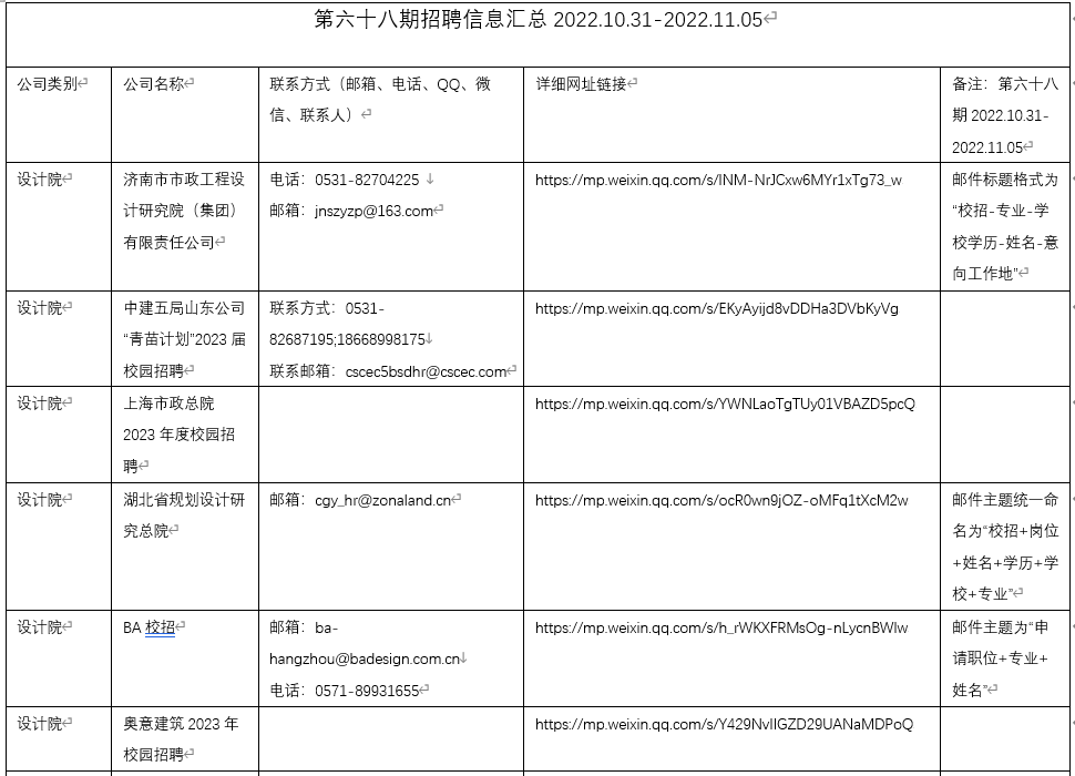第六十八期招聘信息汇总