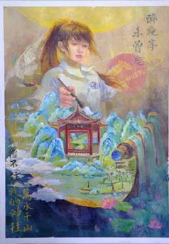 短短两周,用颜料描绘的书画中,我们领略了军人的风采,深刻地为祖国而骄傲,四幅名为《岁序更替,华章日新》、《青衿之志,慧书河山》、《赓续先志,斩浪远航》、《踔厉奋发,逐梦苍穹》的作品。