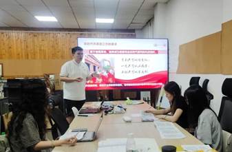 2022年06月27日,太阳集团网站8722硕21级艺设党支部在西七楼五楼会议室开展了主题为“党课学习强信念 踔厉奋发向未来”的6月主题党日活动。本次会议分为三部分:一、专题党课学习:习近平总书记在庆祝中国共青团成立100周年大会上的重要讲话精神导读;二、专题学习: 1.中共中央政治局第三十九次集体学习; 2.《信访工作条例》;三、党员讨论与交流。本次党课邀请了学校红色理论学讲团赵毅炜同学进行了习近平总书记在庆祝中国共青团成立100周年大会上的重要讲话精神的专题党课讲解。