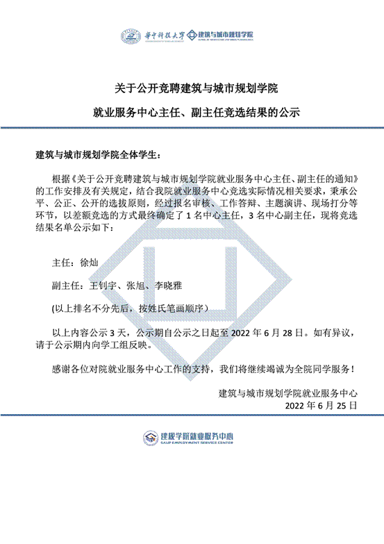 6月14日晚,在南四楼110教室举办了就业服务中心主任换届选举活动,学工组老师杨柳作为评委出席此次活动。经过自我介绍、命题演讲两个环节,12位候选人充分展现了就业服务中心同学们的风采。最后经过现场打分、专家评审等环节,6月25日最终结果出炉。徐灿被任命为主任,王钊宇、李晓雅、张旭被任命为副主任。