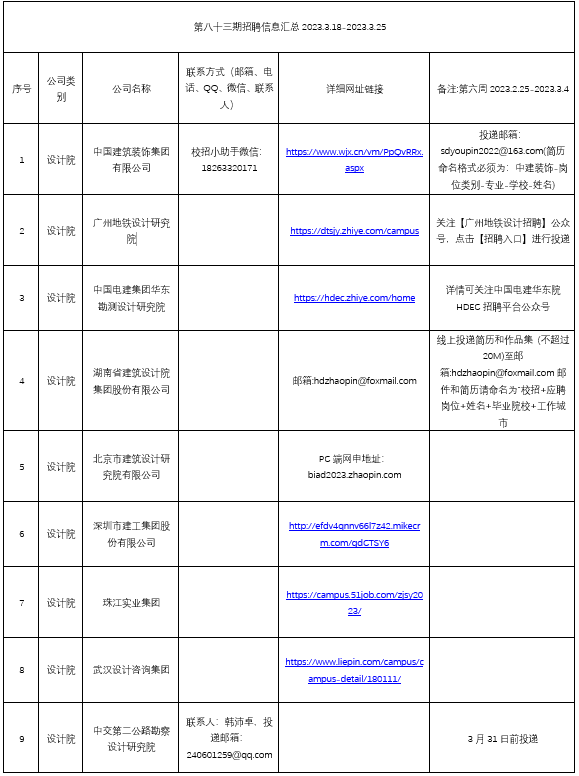 2023.3.18-2023.3.25第八十三期招聘信息汇总表格转换板