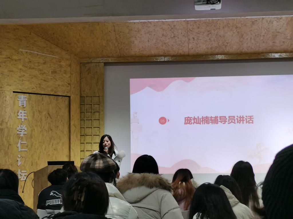 党建辅导员庞灿楠老师做会议总结讲话。她表示,本次主题党日与班团会三会联席的活动形式非常新颖,是党、班、团组织生活会开展的示范。同时,庞灿楠也提出了几点希望和建议,一是会议纪律要求规范;二是建议党员分享心得从青年党员角度出发,联系实际,探索多方面感悟。