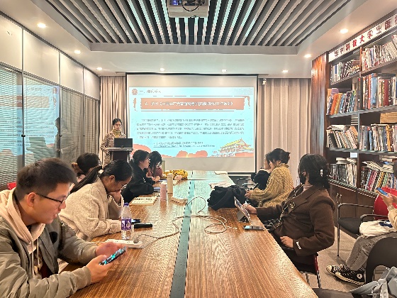 接下来由党支部书记张明明带领大家理论学习,她给我们讲解了《中国共产党支部工作条例(试行)》以及《中国共产党普通高等学校基层组织工作条例》。她介绍到党支部开展工作,包括组织领导、议事决策、日常运行等,必须要有相应的机构和健全的机制。《条例》总结历史传统、现实经验,将党支部工作机制主要设计为党支部党员大会、党支部委员会及其会议、党小组及其会议。党支部党员大会是党支部的议事决策机构,党支部委员会是党支部日常工作的领导机构,党小组主要落实党支部安排的任务。同时,《条例》对各个会议召开的频次、职权和任务、程序等作出明确规定。有了这个机制,党支部日常工作运行就有了一个基本遵循。