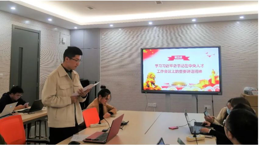 接下来党支书熊章瑞同志以“学习习近平总书记在中央人才工作会议上的重要讲话精神”为主题开展本次党员大会的主题学习。在中央人才工作会议上,习近平总书记发表重要讲话,从党和国家事业发展全局的高度,全面回顾了党的十八大以来人才工作取得的巨大成就,深入分析了人才工作面临的新形势新任务新挑战,科学回答了新时代人才工作的一系列重大理论和实践问题,明确了指导思想、战略目标、重点任务、政策举措。