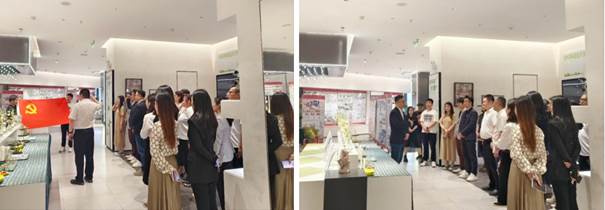活动伊始,全体党员在王沛书记的带领下面向鲜红的党旗,重温入党誓词,一句句铮铮誓词宣示着对党和人民的忠诚,对使命和任务的担当,进一步鼓舞全体党员同志践行入党誓词,吃苦在前,奋斗在先,锤炼过硬作风,锻造高强本领。随后侯云鹏与王沛同志分别发言,对此次联合活动的开展予以了肯定,并对后续的深入交流提出了展望与期许。侯云鹏指出,两个支部在专业服务内容、业务发展方向等多领域有重叠。未来可进一步发挥设计学科的专业优势和中城公司的业务优势,以服务社会为目标,提高学生培养能力导向全面搭建在党建、产学研用各个环节的学习交流平台定期展开支部活动,提升共建能力融合。王沛表示,本次联合活动为两支部的视野开拓、共建共享提供了有利契机。通过双方深入开展讨论交流,共学习,谈认识、找差距,将全方位加强政治思想引领、思想道德教育和法纪作风建设。