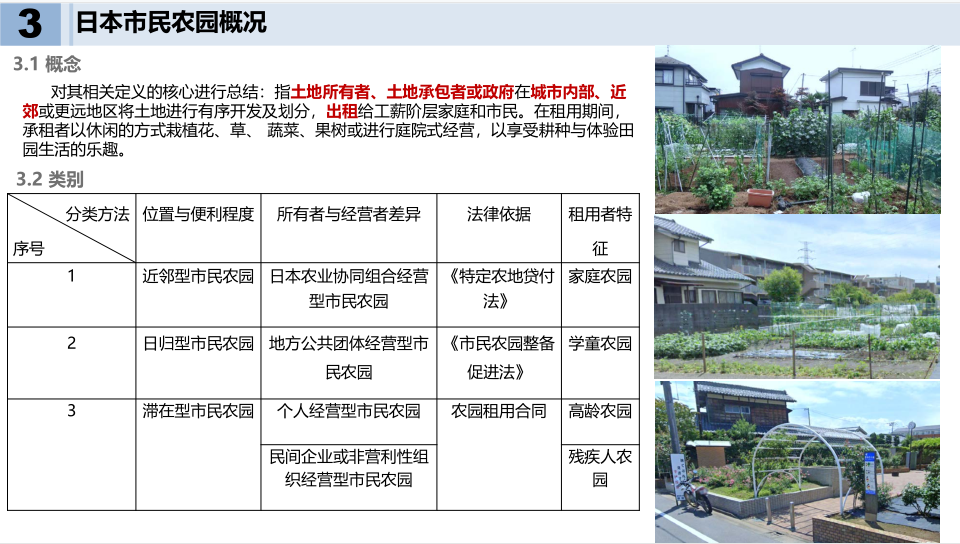 图5:日本市民农园的概念及分类(来源:苏畅老师报告PPT)
