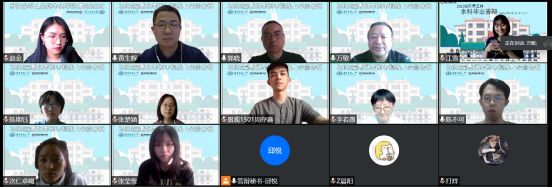 第1组答辩小组评委、同学全体空中合影(赵金截图)