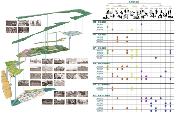 食物想要从种子成长为成品需要经过一系列艰苦的过程,在浦江郊野公园,游憩者可以完整的看到并体验食物一生的成长轨迹。基地内的活动项目设计以食物的活动足迹为依据进行串联。