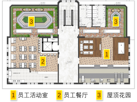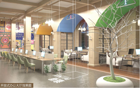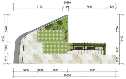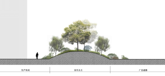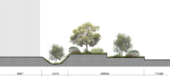 生产区环境污染较为严重,区域内环境设计主要通过绿化种植进行改善提升设计。