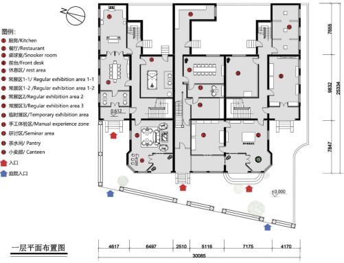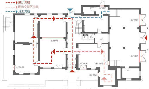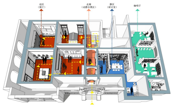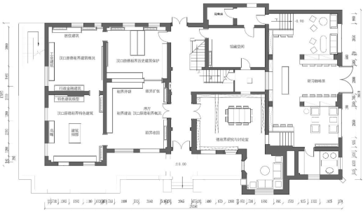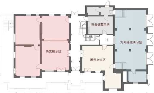 根据武汉警察博物馆周边学校较多,休闲阅读空间少等区位现状,结合博物馆研究、教育等现代性功能,将武汉警察博物馆一层室内空间划分为历史展示区、设备储藏用房、展示交流区及对外开放研习屋四大板块。