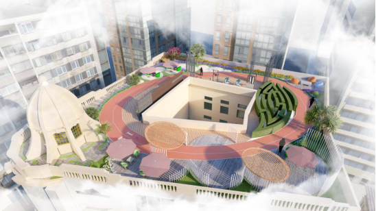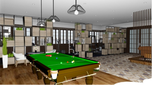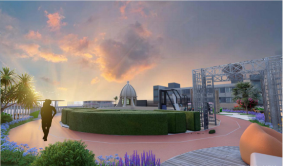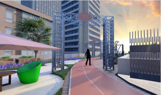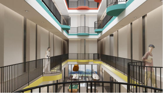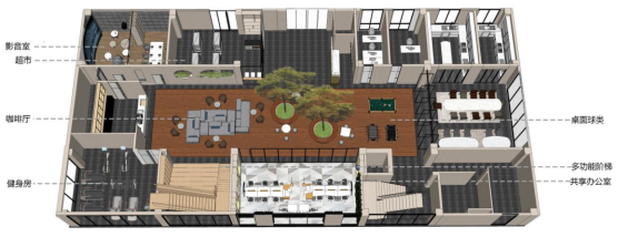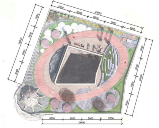 生活区是员工下班之后放松身心的地方。本场地南部设计为运动广场,包括200m生活跑到,网球场、篮球场、健身器材区,为企业职工提供休闲锻炼的地方。