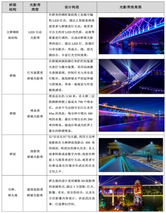 本项目结合了武汉长江大桥光影秀设计实践对城市桥梁光影秀设计方法进行深入研究,在一定程度上实现了建设武汉夜间景观的焦点、打造多元化的城市节事活动、提成武汉城市文化形象的设计目标。与此同时,由于桥梁灯光秀涉及到建筑学、社会学、计算机科学等多个专业领域,笔者跨学科理论基础较薄弱,在理论研究与设计实践过程中更偏重于理论分析与经验总结,尚未能基于数据分析和模型推导对新媒体艺术介入桥梁建筑的具体路径进行深入研究。在未来关于数字光影技术与城市空间的结合方法研究中,可更多的着眼于城市夜间景观的整体打造,通过整体规划设计,使单个的城市夜景节点相互关联,进一步促进城市夜间景观的品质提升。同时,坚持桥梁观影秀传递艺术与文化的永恒主题,不断探索更多元化的技术与艺术语言,推动新媒体艺术更广泛、更深入的参与城市生活,为城市文化传递与城市形象塑造服务。