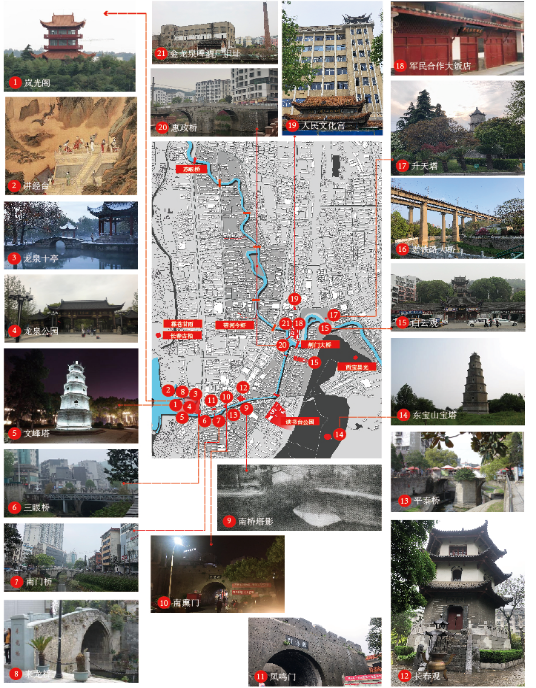 荆门不仅是湖北省的一座历史文化名城,同时还是中国优秀旅游城市,拥有着明显陵、屈家岭文化遗址、黄仙洞、漳河风景区等文化及旅游资源。本设计对竹皮河线性文化景观区域内的历史文化意象进行分析,通对荆门城区整体发展过程中的城市意象元素和符号进行归纳总结与概括,有利于梳理出荆门城市人文精神的关键点和对重要文化氛围进行掌握,保证基调正确为竹皮河线性文化景观营造的具体方案提供必要的调研基础。