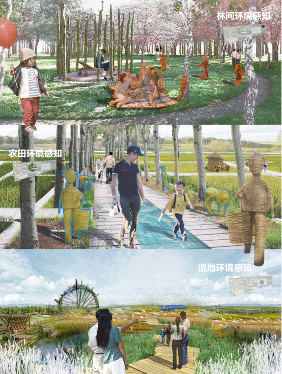 设计内容主要从环境感知、活动感知、文化感知和游憩感知四个方面出发,以下四条策略为主线对公园整体进行都市农业整体布局:①充分发挥生态基底优势,以低影响开发为原则进行特色农业环境设计;②设置兼具有教育意义和趣味性的农业活动,创造丰富有趣的活动体验;③收集农业要素,挖掘历史文脉,营造具有地域特色的农耕文化氛围;④从游憩者角度出发,结合互联网的运用,营造舒适的游憩环境。