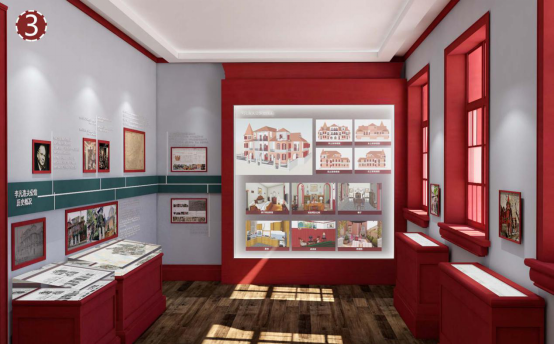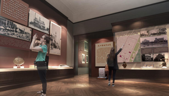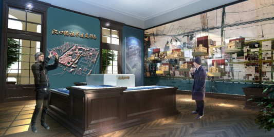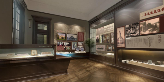 汉口原德租界历史建筑保护展厅设计,以原德租界部分历史建筑现状图、修复过程图、历史照片为主要展品,重点展示德国工部局、德国领事馆以及美最时洋行等历史建筑的保护历程。