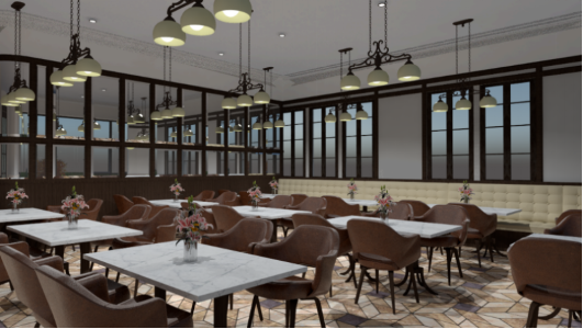 一层咖啡厅作为武汉警察博物馆独立对外开放的非正式交流空间,是博物馆人性化空间设计的重要组成部分。咖啡厅整体设计为现代主义风格,简约温馨。运用当代青年喜闻乐见的建筑装饰风格,实现历史建筑的与时俱进。