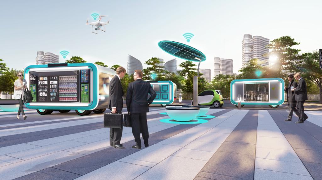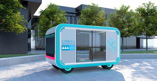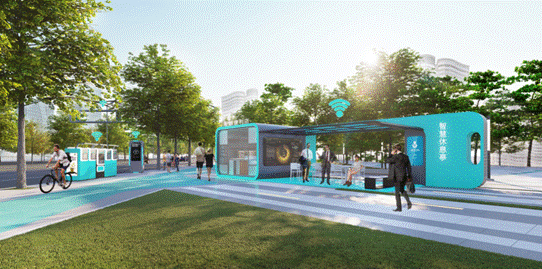 无人化技术与智能化技术的结合促使部分城市环境设施发生变革,同时,环境设施的“智慧”转型又反过来促进人文与技术的深度融合,下图为各类服务设施互相联动的使用场景。