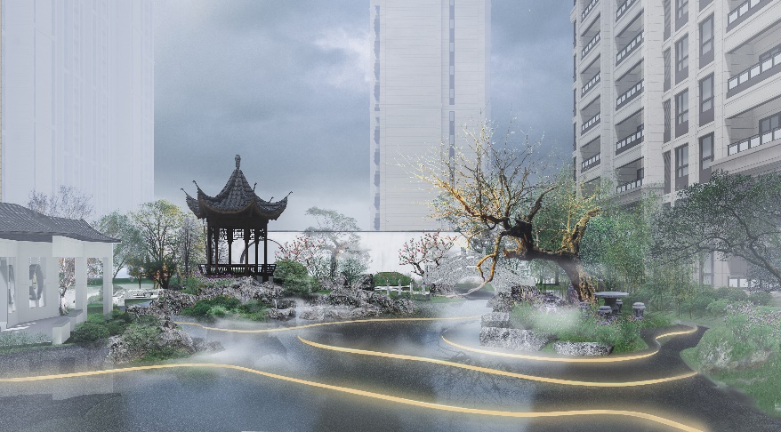 对中国古典园林虚实相生意境营造手法的研究,旨在探寻更深层次的可行性手法的具体运用,但在当代多元化社会环境下,如何协调现代园林景观设计与传统审美的艺术,依旧任重而道远。对于高层住区景观虚实相生意境营造的理论研究还需要进行系统性的补充,设计实践目前仅深入到方案设计阶段,具体项目有待实施。