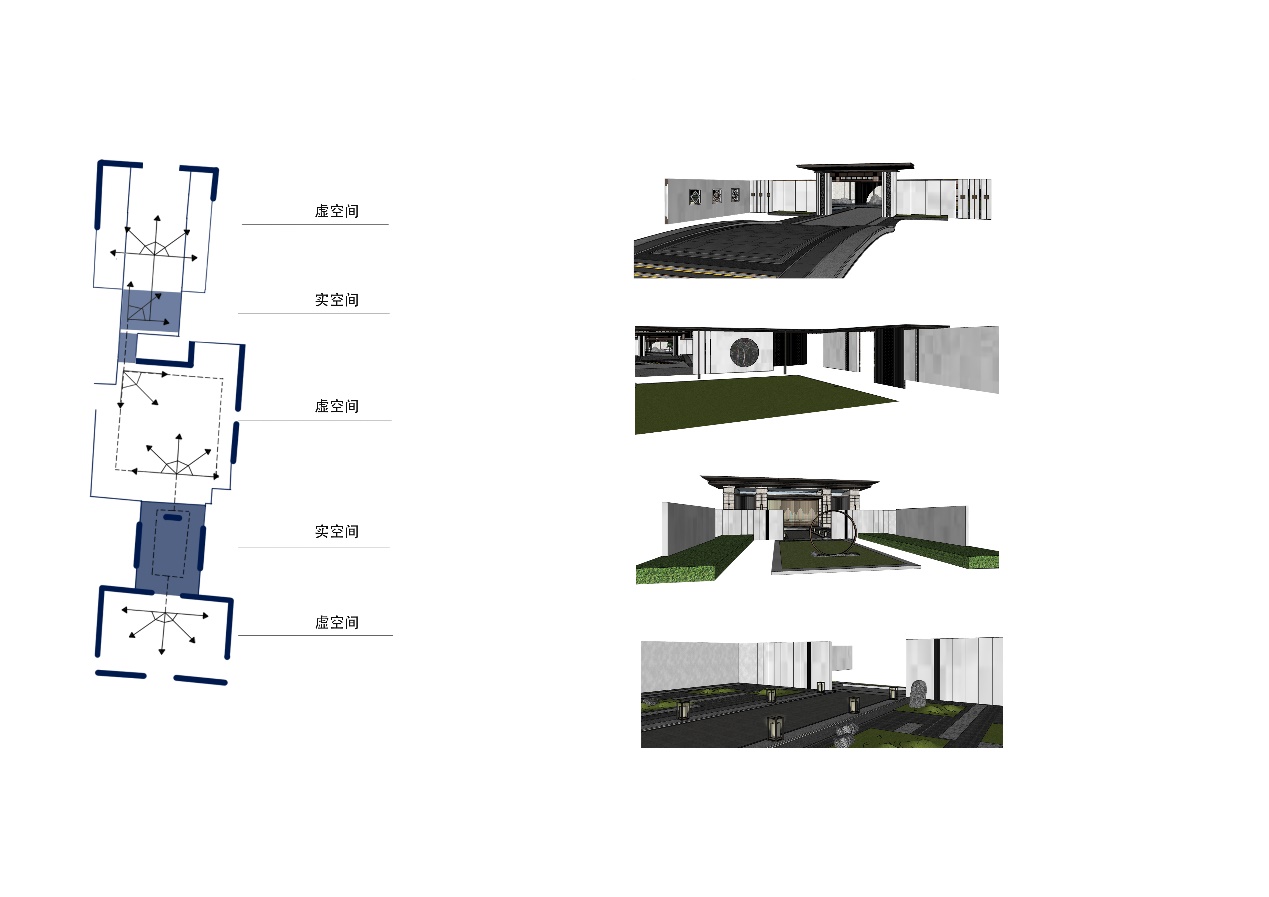 设计提取古典园林意境营造之虚实相生手法的一般规律及内容,并基于高层住区景观与古典园林的变化进行更新运用,以找到“虚实相生”手法在高层住区景观意境营造的可行性方法。设计前期,从造园要素、空间布局、环境艺术三个视角,分析了江南私家园林的虚实相生意境营造手法。从空间尺度、观景视角、功能需求、材料技术等方面分析新中式高层住区景观与江南私家园林的差异,并将虚实相生意境营造手法进行继承与更新,运用在高层住区景观中。