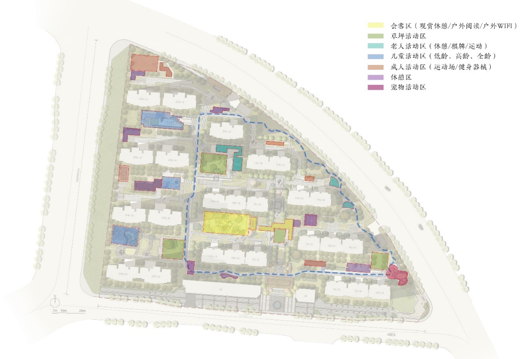 根据日照分析以及风向分析,选择较为良好的一类用地设置聚集活动区域。