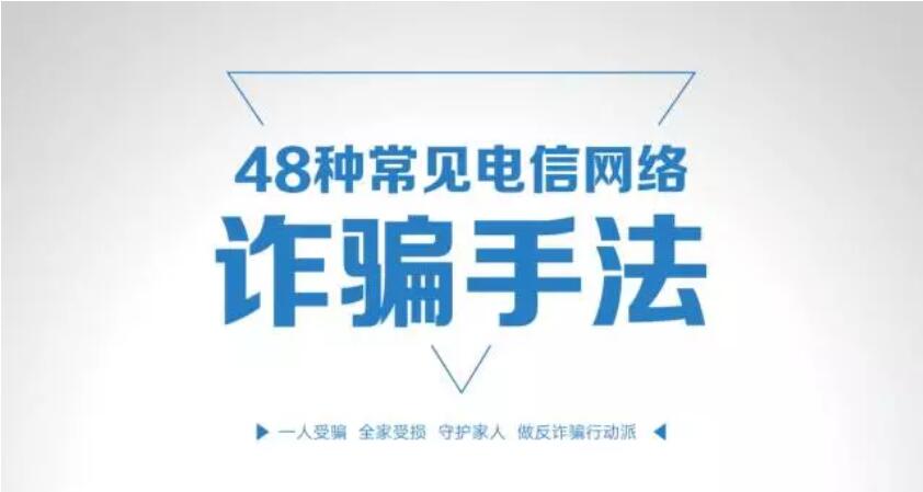 近日,公安部刑侦局公布了48种常见电信网络诈骗手法,倡导大家做反诈骗行动派。其中,使用电话类的占63.3%,使用短信占14.8%,使用网络的占19.6%。